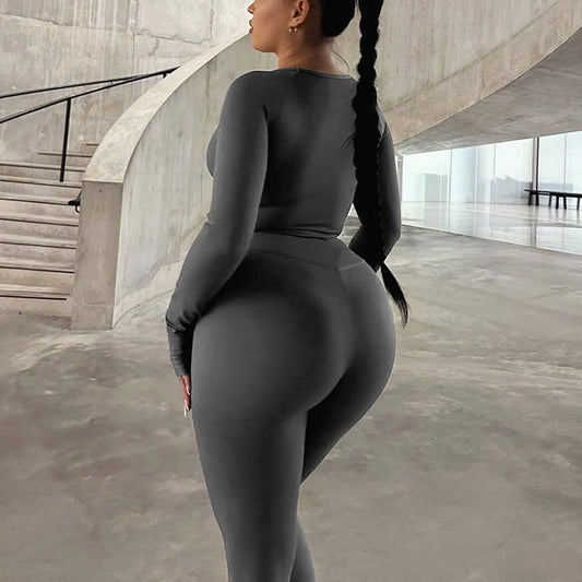 Long Sleeve Round Neck Top Package Hip Skinny Trousers High Elastic Sports Yoga Body-hugging Suit